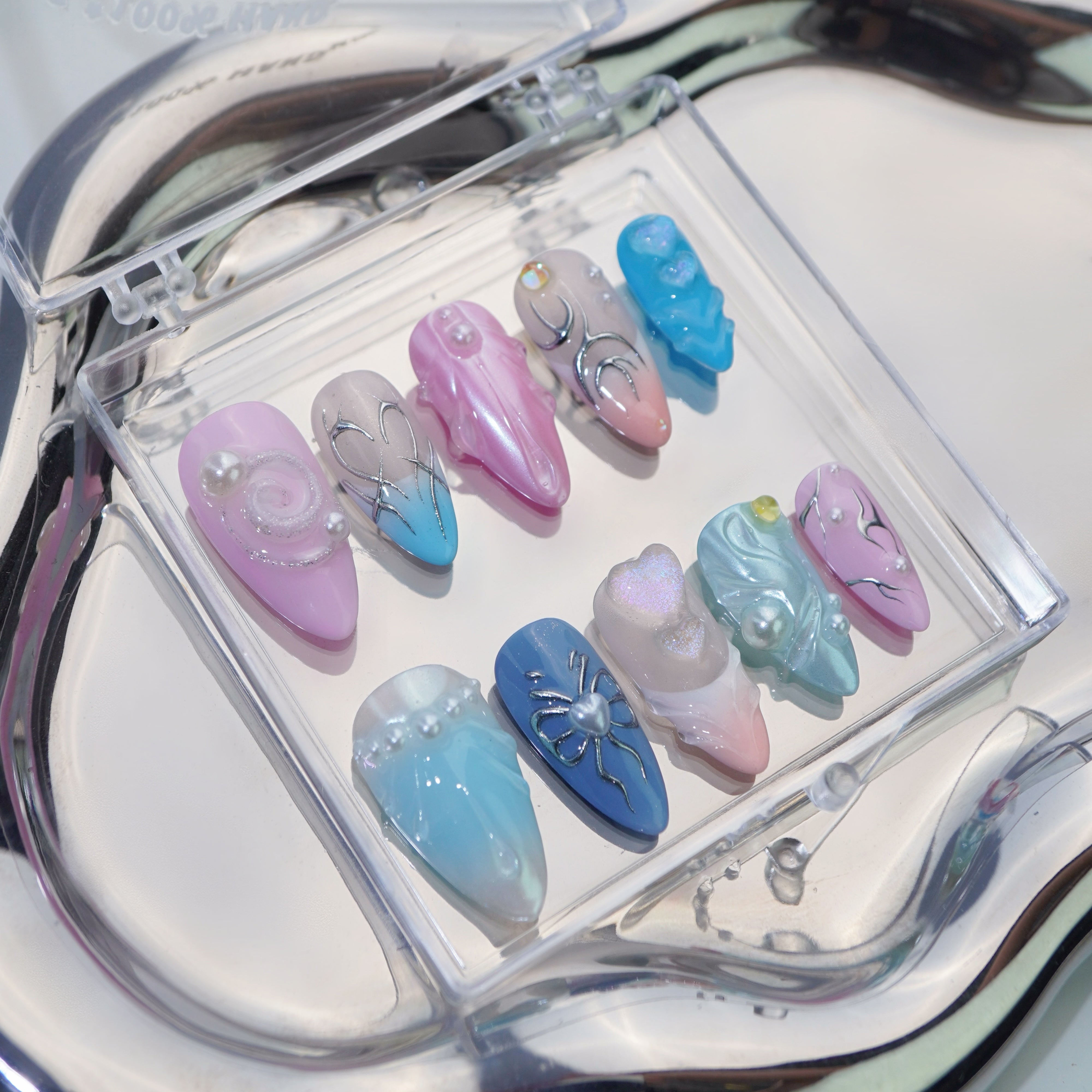 Celebrate the language of love with press-on nails adorned with heart-shaped designs. Let your nails exude romance and sweetness, adding a touch of love to your everyday style.