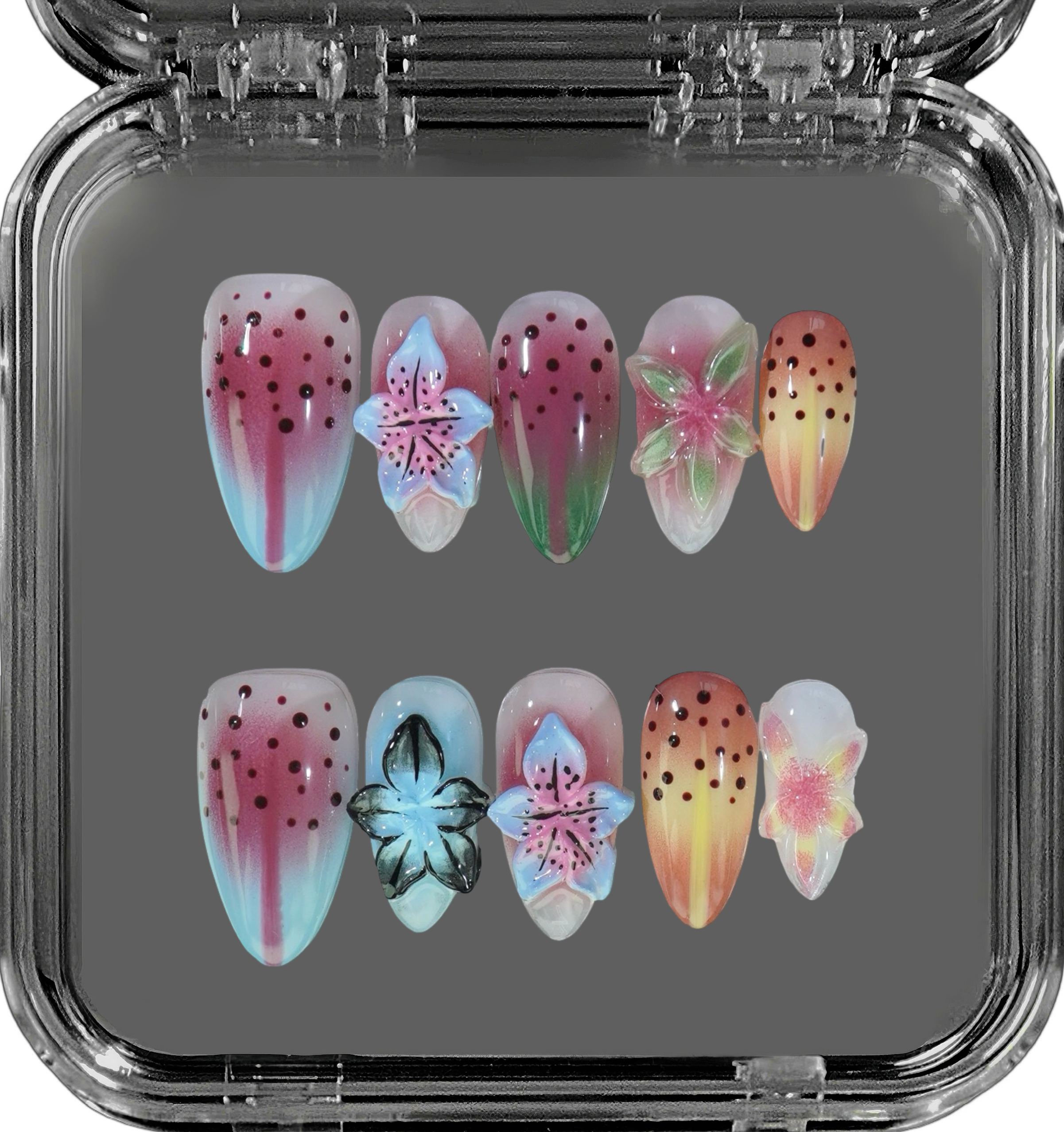 Each one is carefully handcrafted using high-grade PMMA acrylic which are sturdy, durable, and just as strong as salon acrylics.