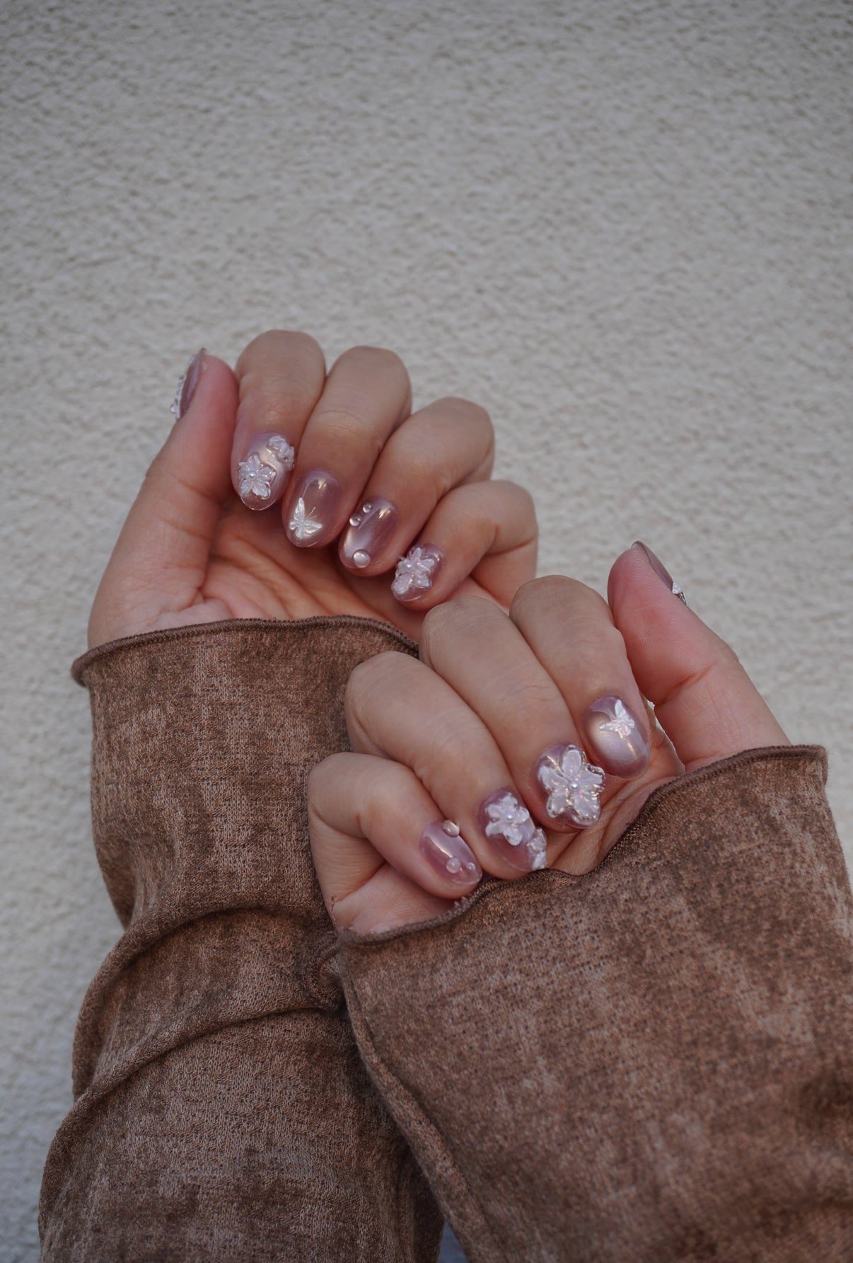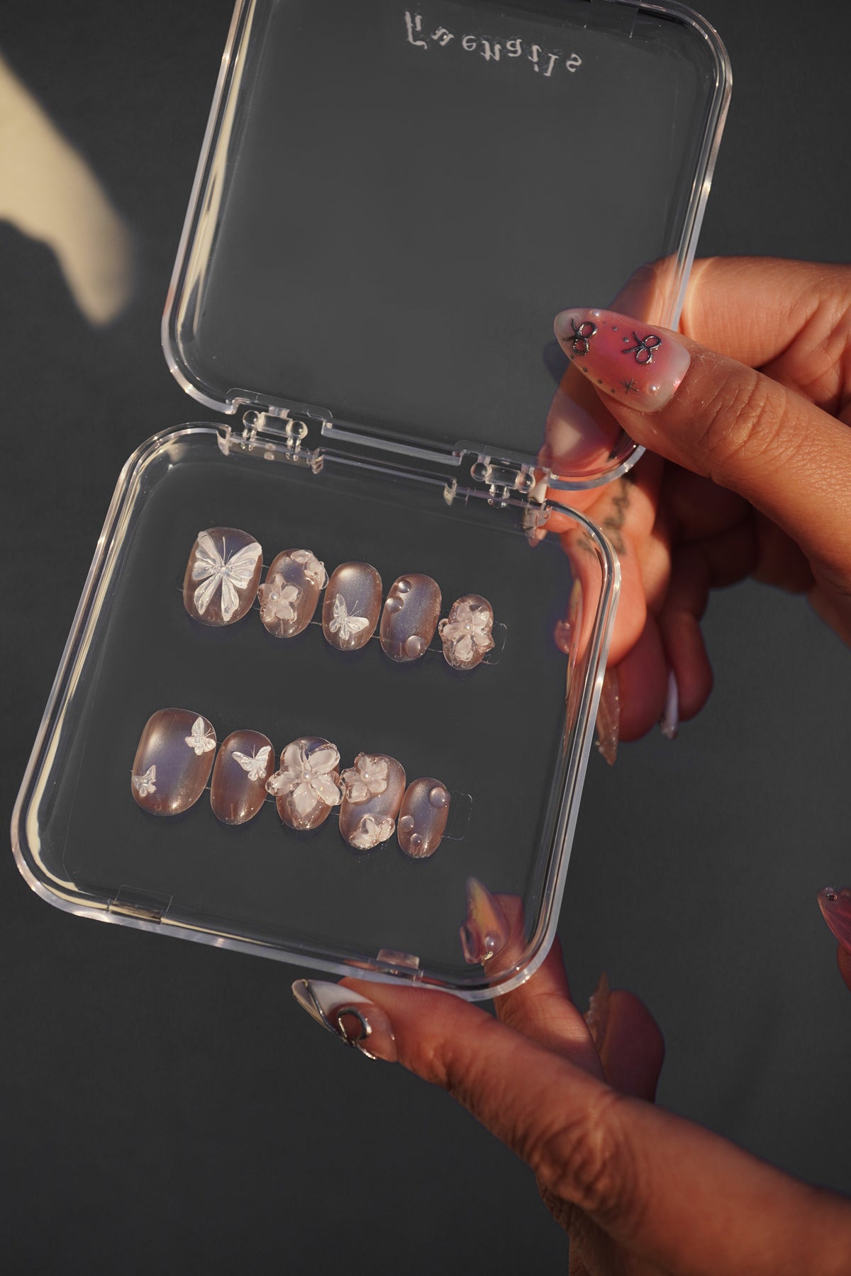 Step into a whimsical world this Halloween with our magical, fairy-core press-on nails. Let your imagination soar as you adorn yourself with enchanting designs that capture the mystical charm of fairies and the haunting allure of the season. From delicate, glittering wings to otherworldly patterns, these nails bring a touch of magic to your look, perfect for celebrating Halloween's spooky yet enchanting vibes.
