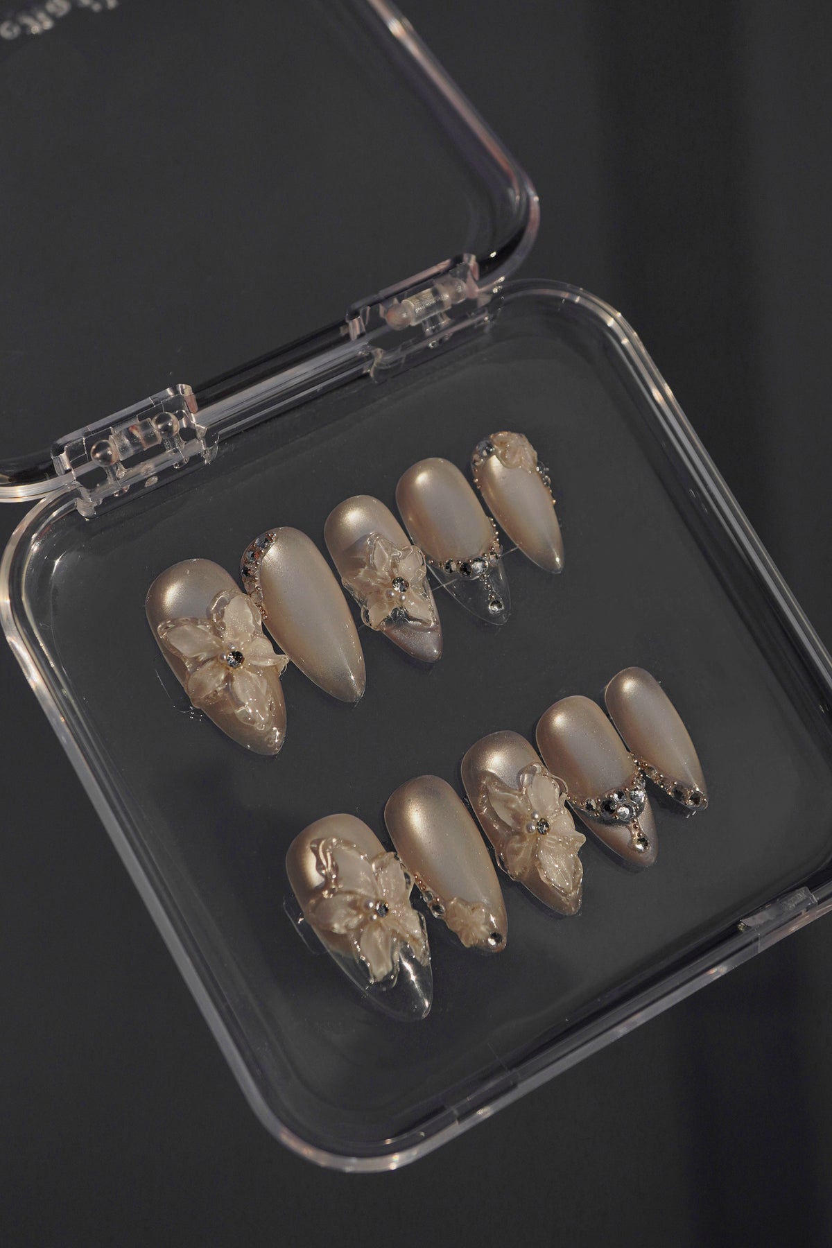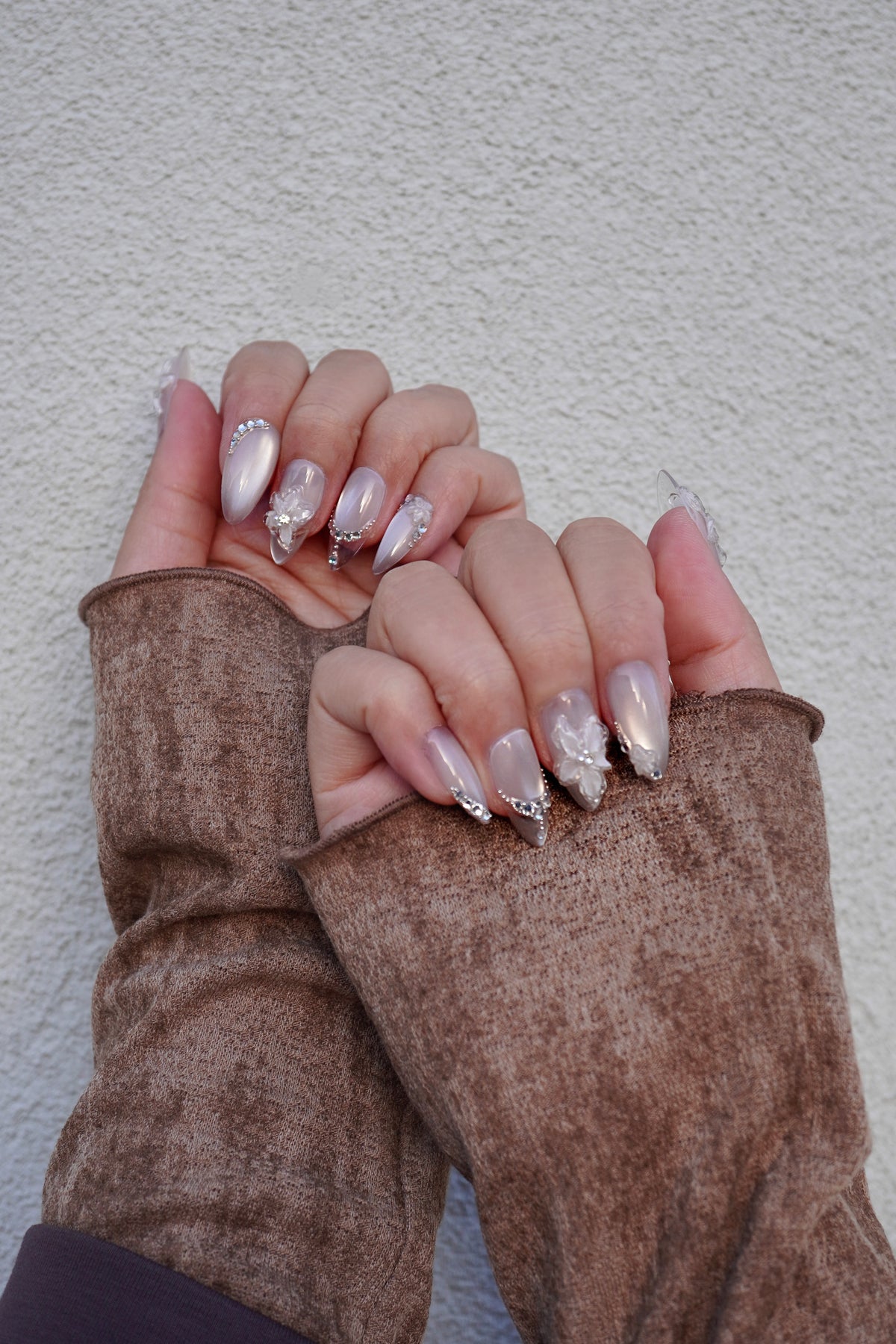 Step into a whimsical world this Halloween with our magical, fairy-core press-on nails. Let your imagination soar as you adorn yourself with enchanting designs that capture the mystical charm of fairies and the haunting allure of the season. From delicate, glittering wings to otherworldly patterns, these nails bring a touch of magic to your look, perfect for celebrating Halloween's spooky yet enchanting vibes.